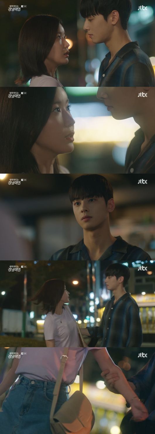 10일 오후 방송된 JTBC 금토드라마 ‘내 아이디는 강남미인’(극본 최수영, 연출 최성범)에서 도경석(차은우 분)과 강미래(임수향 분)가 서로에 대한 고민을 털어놓으며 한층 가까워지는 모습이 담겼다.