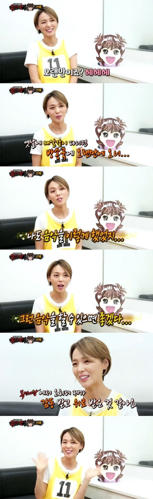 선예는 "방송국에 와서 이렇게 방송을 하니 정말 긴장이 많이 됐다. 옛날 생각이 훅 나더라. 라비씨가 나의 팬이라고 말해주는 걸 보면서 음악을 내가 그렇게 했었지 라고 생각이 나더라"라고 말하며 후배들의 열렬한 응원에 고마움을 드러냈다.