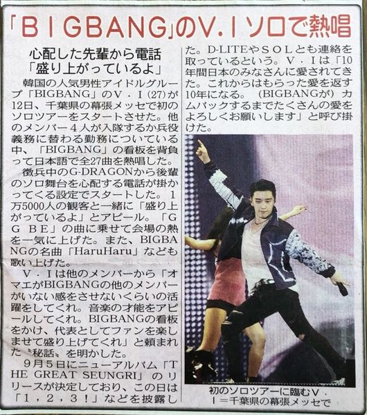산케이스포츠는 “승리는 결의가 넘친 솔로 투어를 선보였다. 빅뱅이 아닌 혼자서 무대를 꽉 채우며 내공을 선보였다”고 보도하는가 하면, 스포츠 닛뽄은 “승리의 일본 첫 솔로 투어는 감동 속에 진행됐다”라고 소개했다.