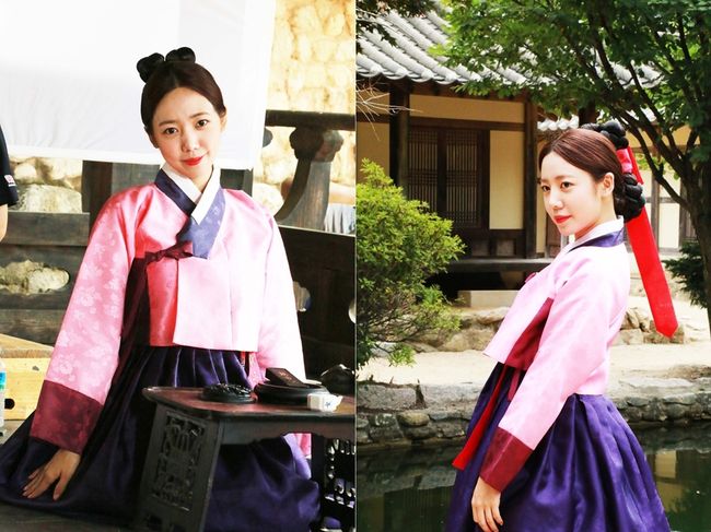 걸그룹 에이핑크(Apink)의 김남주가 ‘악동탐정스 시즌2’ 촬영 현장에서 화사한 한복 자태로 시선을 끌었다.