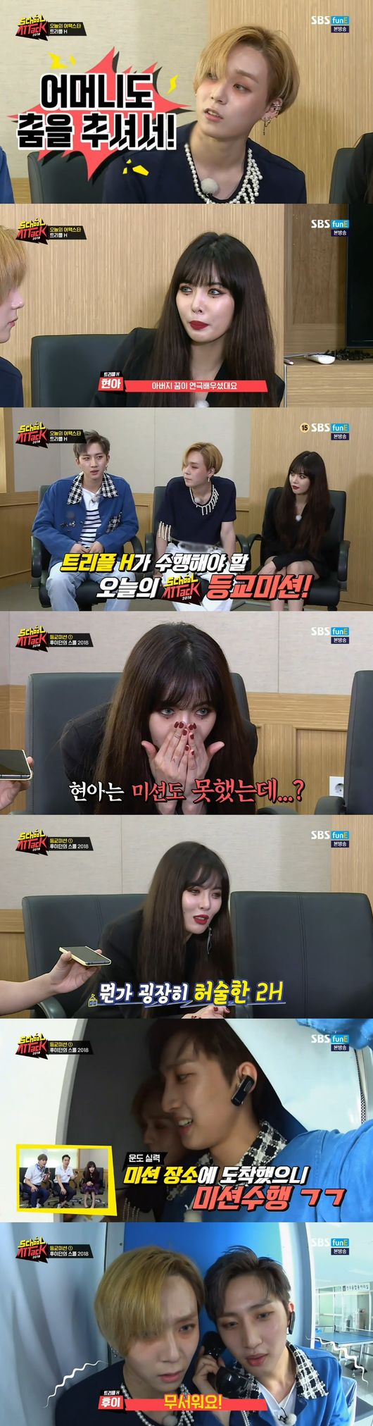 모든 미션을 성공해 본격적으로 어택 약 천명 학생들과 함께하는 깜짝 선물을 진행하기로 했다. 드디어 '스쿨어택'이 떴다. 학생들 모두 강당으로 뛰쳐나갔다. 모두 꿈에 그리던 그 순간, 현수막이 오픈되면서 트리플 H가 등장, 독보적인 카리스마와 존재감으로 학생들의 분위기를 후끈 달궜으며, 특히 신곡 '레트로 퓨처'를 최초 공개해 뜨거운 호응을 얻었다. 무엇보다 역대급 긴장감 넘치는 스쿨어택이 한민고를 흔들어놓으며 어택에 성공했다. /ssu0818@osen.co.kr
