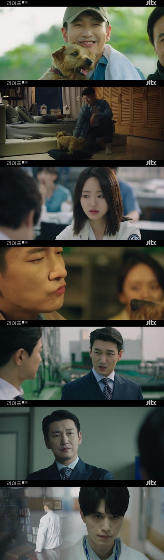 13일 전파를 탄 JTBC 월화 드라마 '라이프' 7화에서 사장 구승효(조승우 분)는 유기견 센터에 봉사를 나갔다. 응급의학센터 의사 예진우(이동욱 분)와 소아청소년과 의사 이노을(원진아 분)도 함께였다.