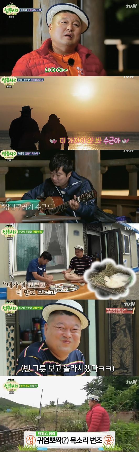 '섬총사2'에서도 강호동과 이수근은 끈끈한 우정을 과시하며 시청자들에게 '힐링'을 선사해왔다. 그러다 최근 강호동의 부친상 소식이 전해지면서 이날 방송은 그 어느 때보다 강호동에 초점이 쏠렸던 바.