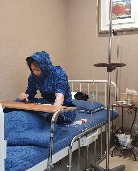 사진 속에서 이홍기는 링거를 맞으며 체력을 회복하고 있는 모습이다.