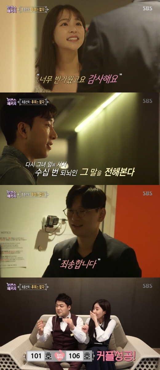 15일 방송된 SBS '로맨스패키지'에서는 청춘들의 로맨스 최종회가 공개됐다. 104호는 105호와, 101호는 106호와 커플이 매칭되며 총 두 커플의 탄생을 알렸다.