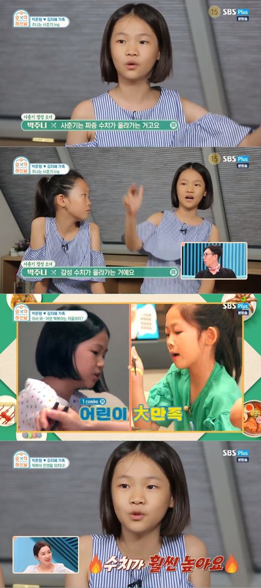 코미디언 박준형의 딸 박주니가 12살 사춘기 소녀 답지 않은 입담을 자랑했다. 최고의 코미디언 부부 자녀 답게 조기교육 받은 만만치 않은 독설을 보여주면서 사춘기 소녀다운 매력을 보여줬다.