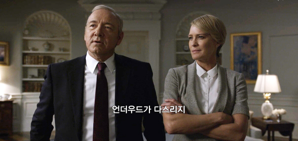 한편, 스릴러 장인 데이빗 핀처 감독이 연출을 맡아 화제를 모은 '하우스 오브 카드'는 넷플릭스 오리지널 드라마로 주인공 ‘프랭크 언더우드’와 ‘클레어 언더우드’ 부부가 백악관을 차지하기 위한 욕망을 가감 없이 드러낸다. 여기서 힘 있는 정치인 ‘프랭크 언더우드’는 국회의 지지를 얻어 부통령의 자리에 오른 뒤 대통령을 물러나게 만드는 야망가이다.