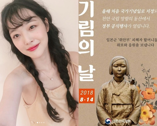 설리는 '기림의 날' 포스터를 SNS에 게재하며 국민적 관심을 모으는 데 힘을 보탰다. 이에 많은 응원이 이어졌지만, 일본 네티즌들의 악플 테러를 받기도 했다. 하지만 이런 반응에 신경쓰지 않고, 설리는 여느 때처럼 일상을 공개하며 담담한 모습을 보여 팬들로부터 “멋지다”는 응원과 지지를 받았다. / yjh0304@osen.co.kr