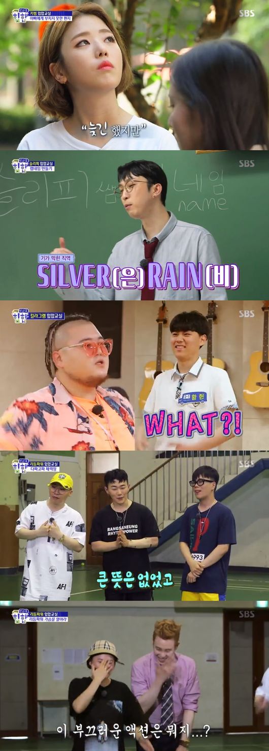 슬리피 반의 이야기가 펼쳐졌다. 3학년 정은비, 노예원, 강수지, 오정태, 김동호가 해당됐다. 슬리피는 “노하우, 연륜 있으니까 믿고 따라오면 된다”며 자신감을 드러냈다. 슬리피 선생님이 가장 먼저 중요하다고 밝힌 포인트는 랩 네임이었다. 정은비는 깜지하는 은비라는 뜻의 ‘깜비’, 노예원은 얼굴 평가 짱나라는 뜻의 ‘얼짱’, 오정태는 “그 친구를 보면 아직도 그 하루가 행복하다”며 크러시 보이라고 랩네임을 지었다. 강수지는 “쌍꺼풀 수술을 백만 원 주고 있다”며 ‘백만원’이라는 이름을 스스로 붙였다.