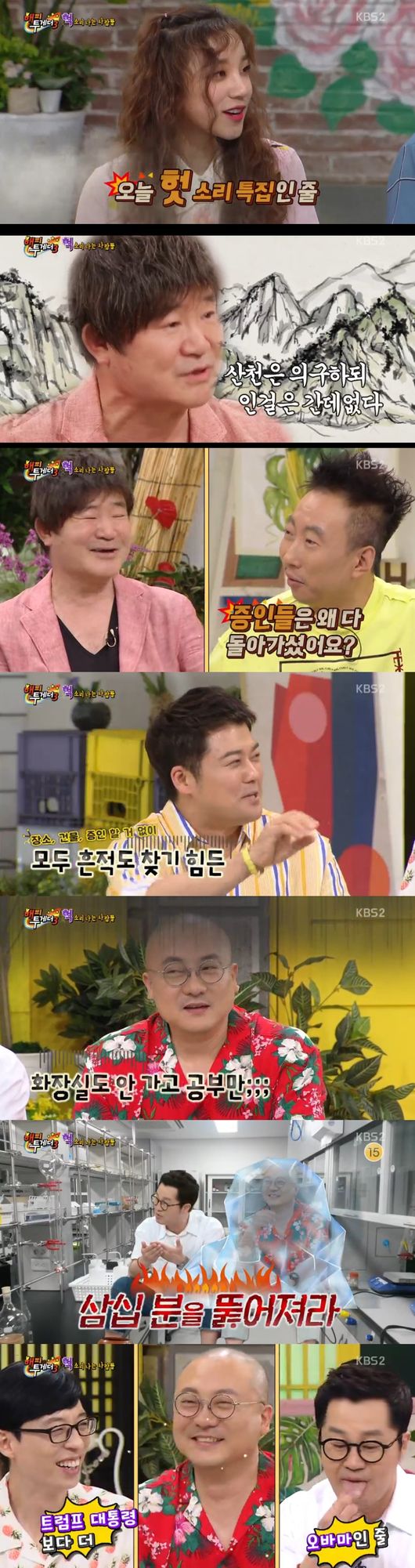 16일 방송된 KBS2TV 예능 '해피투게더 시즌3 '에서 최강 토크조합, 원재개그 듀오 클놈 염경환, 지상렬, 그리고 한상진, 이게인, 우기가 출연했다.