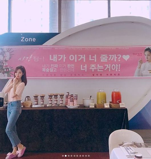 그런가 하면 서현은 같은 날 "꺄아악. 배우 김지훈 오빠가 커피&츄러스 차를 보내주셨지훈. 얼굴도 마음도 멋진 선배님. 너무 맛있게 감사히 잘 먹었서현. 끝까지 힘낼게용"이라는 글과 함께 또 여러장의 사진을 올려 시선을 모았다.