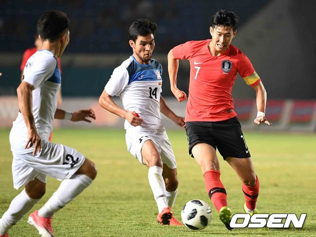 전반 7분 손흥민이 페널티지역 중앙에서 강력한 왼발 슈팅을 날렸으나 살짝 벗어났다. 키르키스스탄은 파이브백을 중심으로 두줄 수비로 버티기에 나섰다. 말레이시아전에 이어 한국은 상대 밀집수비 공략에 어려움을 겪었다.