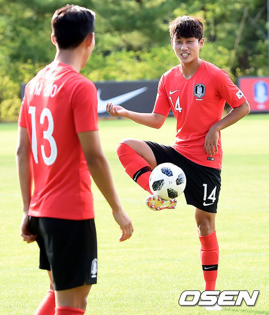 김학범 감독은 키르기스스탄 포백을 사용하면서 중원에도 변화를 줬다. 4-2-3-1로 나서 황인범이 2선에 올라가고 장윤호-이승모가 중원을 지켰다.