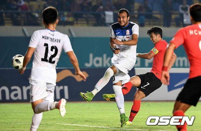 손흥민은 2018 자카르타-팔렘방 아시안게임 남자 축구 대표팀은 20일(이하 한국시간) 밤 9시 인도네시아 반둥 시 잘락 하루팟 스타디움서 키르기스스탄과 대회 조별리그 최종 3차전 후반 18분 선제골을 기록했다. 현재 스코어는 1-0.