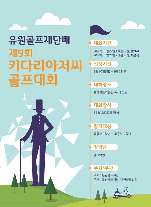 유원골프재단은 다가오는 9월 10일부터 9월 21일까지 ‘유원골프재단배 제9회 키다리아저씨 골프대회’ 참가 접수를 시작한다고 21일 밝혔다.