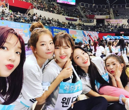 공개 된 사진 속 레드벨벳은 서로 다정하게 끌어안으면서 친분을 자랑했다.