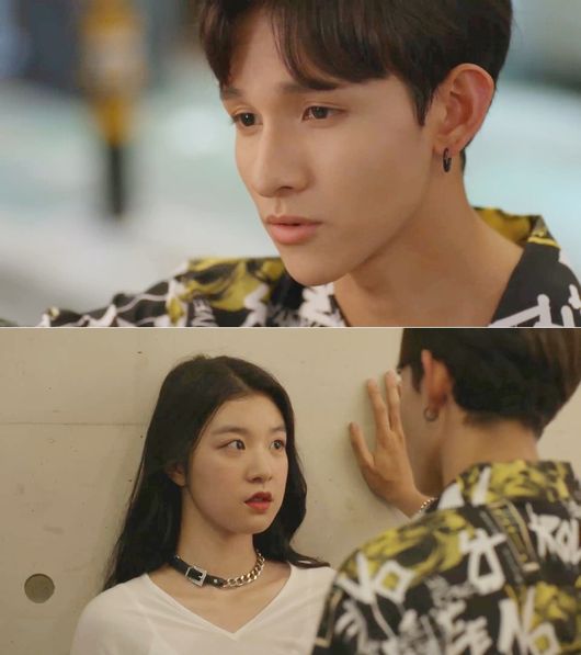 이어진 사진에서 김사무엘은 김소희가 선 벽을 손으로 짚고 있는 모습. 두 사람은 진지한 표정이지만, 설레는 관계인지 혹은 반항아 김사무엘이 김소희에게 어떤 경고를 하고 있는지 알 수 없어 궁금증을 증폭시킨다.