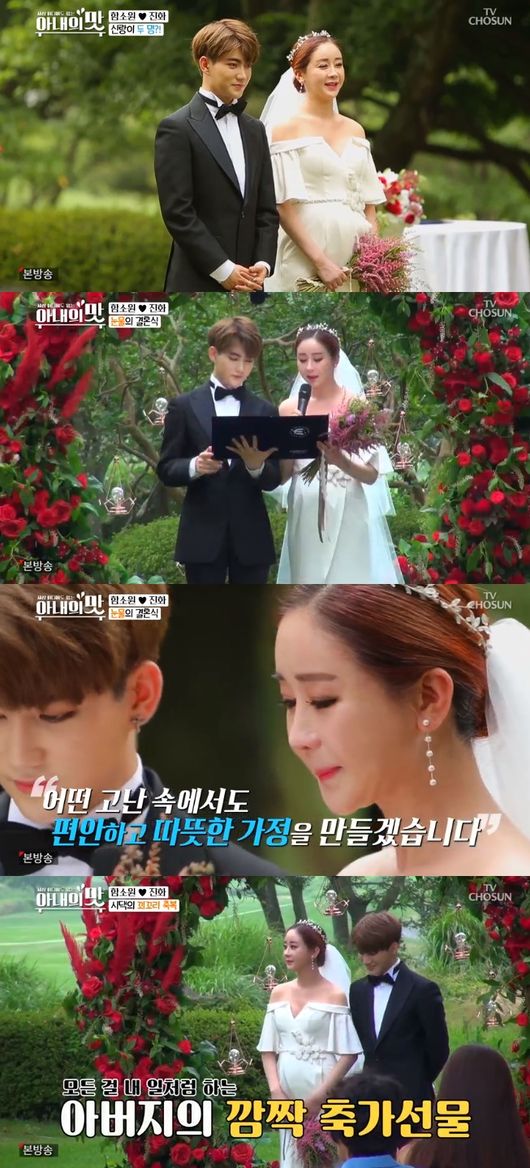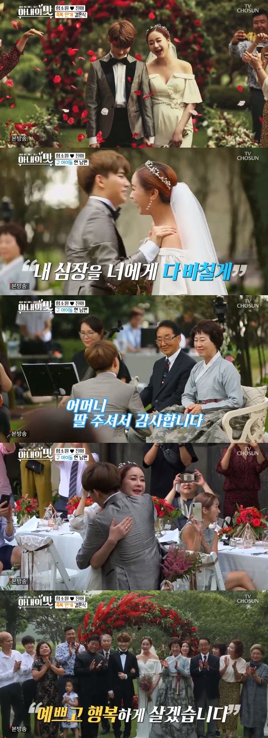 21일 방송된 TV조선 예능 '세상 어디에도 없는, 아내의 맛'에서는 18살 나이차와 국적을 이겨내고 사랑의 결실을 맺은 함소원♥진화 부부의 제주도 결혼식 현장이 담겼다.