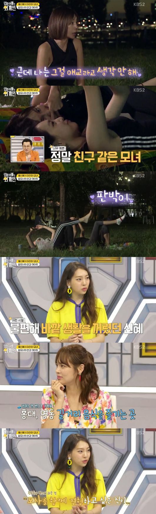 21일 방송된 KBS2 예능 '엄마아빠는 외계인'에서 황신혜와 딸 진이가 한강 나들이를 즐기며 성공적으로 소통했다.