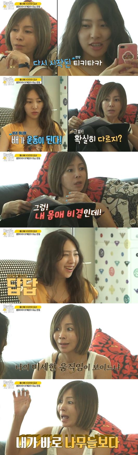 황신혜와 이진이 모녀 일상이 그려졌다. 아침부터 TV 채널로 티격태격했다. 결국 다이어트 프로그램으로 타협했다. 황신혜는 딸에게 "항상 배에 힘주고 있어라"며 몸매비결을 전했다. 뱃살을 빼기 위한 내장지방 운동법을 보자마자 자리에서 일어나 바로 실천하기 시작했다.