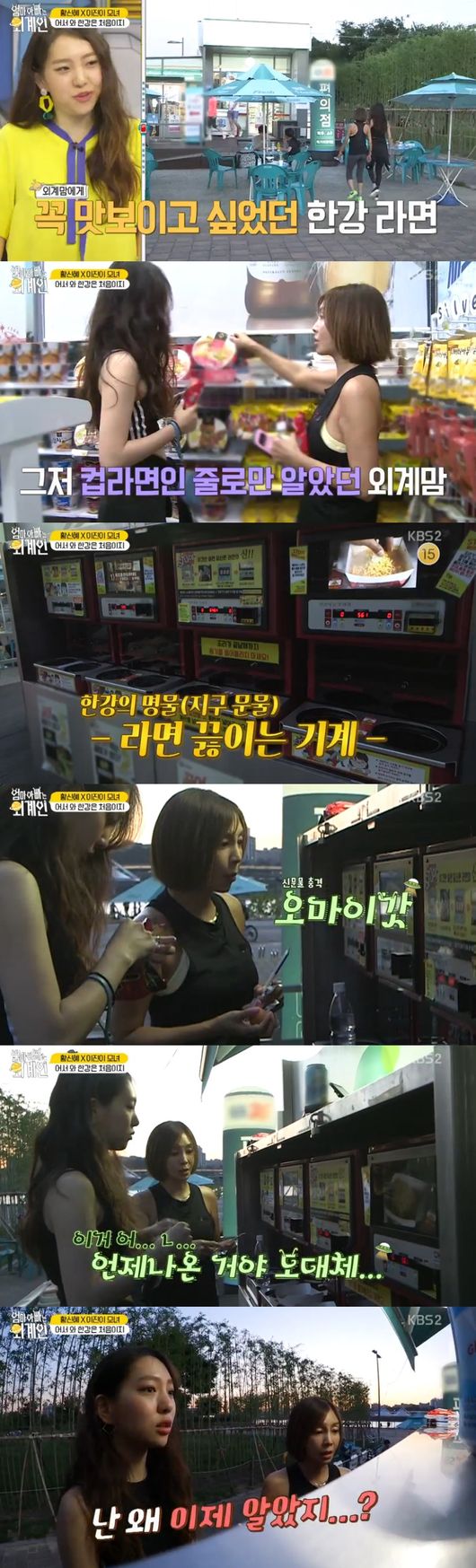 진이는 한강 즐기는 법을 직접 알려줬다. 한강라면부터 전수했다. 컵라면인 줄 만 알았던 편의점 신세계에 신기해했다.