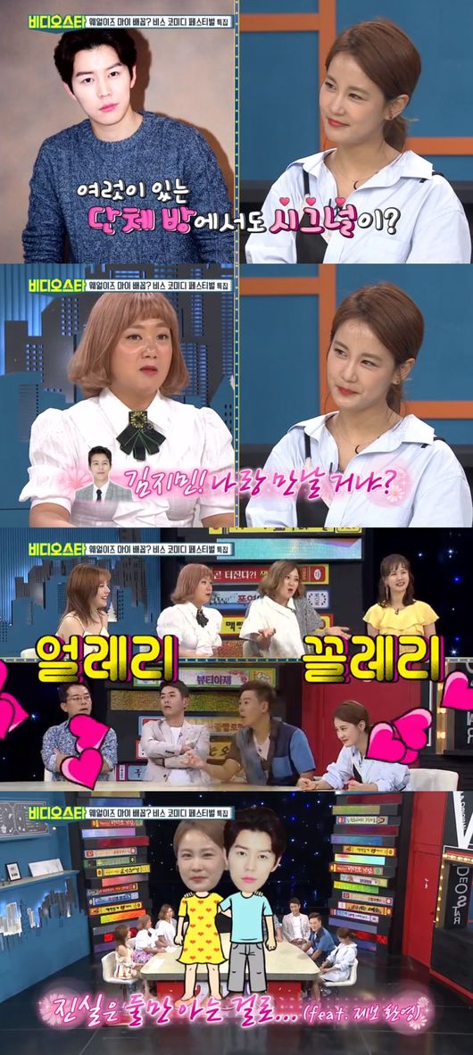 지난 21일 방송된 MBC에브리원 ‘비디오스타’에는 개그맨 김준호, 김대희, 변기수, 김지민이 출연했는데, 박나래와 김대희의 폭로로 김지민과 신지훈이 ‘썸’ 관계라는 의혹이 생겼다. 이들은 김지민과 신지훈의 관계가 의심스럽다는 반응을 보였다.