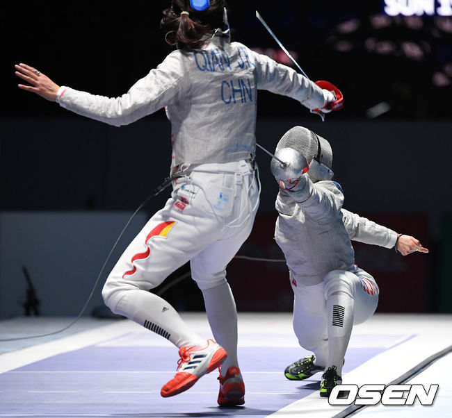최수연이 7번째로 피스트에 올랐다. 막고 찌르기로 31-29를 만든 뒤 상대보다 반박자 빠른 공격을 연이어 성공시키며 34-29로 달아났다. 중국은 멀쩡한 머리를 다시 묶으며 흐름을 끊으려 했지만 한 번 기세가 오른 최수연을 막지 못했다. 최수연은 35-29를 만들고 피스트에서 내려왔다.