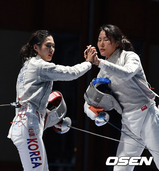 올림픽 금메달에 빛나는 김지연이 승부에 종지부를 찍었다. 종료 2분 25초 전 44-36서 회심의 마지막 찌르기로 2연패를 확정지었다. 개인전 동메달의 아쉬움도 깨끗이 씻어내는 순간이었다./dolyng@osen.co.kr