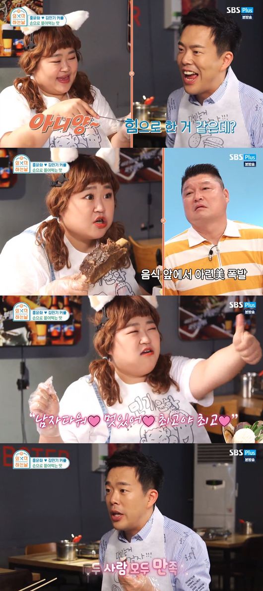 22일 방송된 SBS Plus '외식하는 날'에서는 홍윤화-김민기 커플이 다이어트 치팅데이에 조갈찜(조개+갈비찜)을 즐기는 모습이 그려졌다.