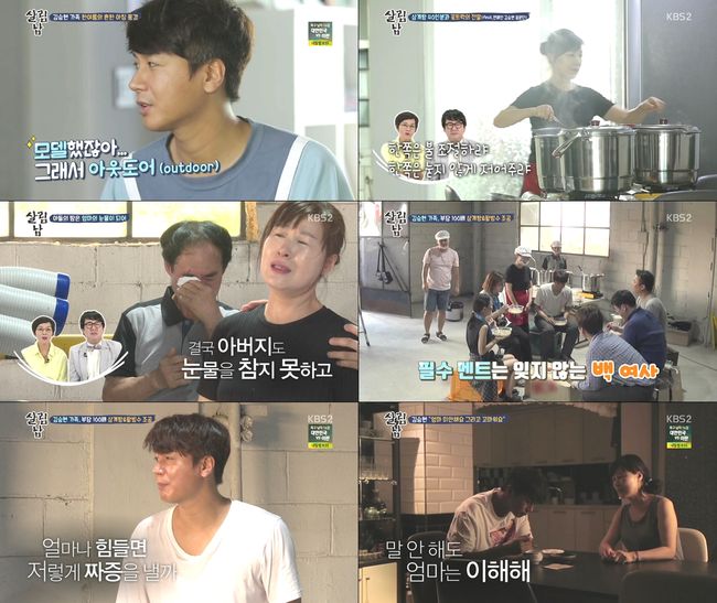 아들에 대한 애정과 안타까움에 눈물을 쏟아내는 부모님과 순간 욱하는 감정에 큰 소리를 냈지만 후회하며 미안함과 고마움을 전하는 김승현의 모습에서 진심으로 서로를 위하는 가족애가 전해지며 시청자들의 마음을 흐뭇하게 했다.