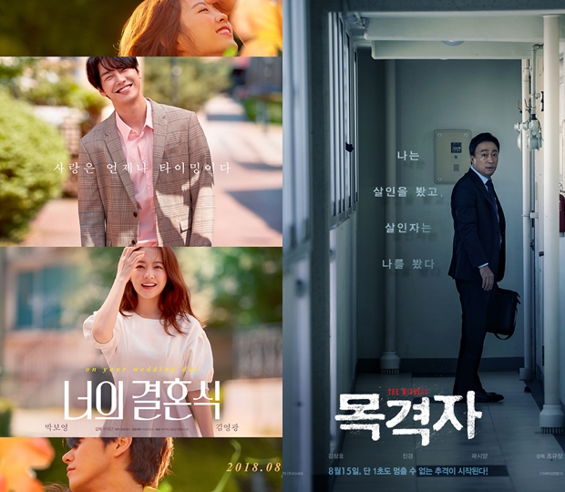 로맨스 드라마 영화 ‘너의 결혼식’(감독 이석근)이 개봉 첫 날 박스오피스 1위를 기록했다. 이에 줄곧 1위를 지켜오던 스릴러 영화 ‘목격자’(감독 조규장)는 2위로 하락했다.