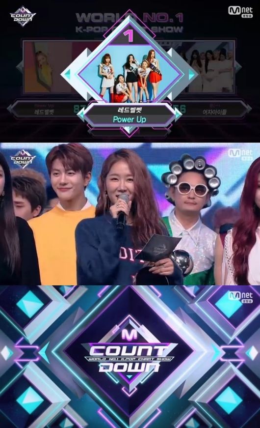 23일 방송된 Mnet '엠카운트다운'에서는 레드벨벳 '파워 업'이 여자아이들 '한'을 누르고 1위에 올랐다.