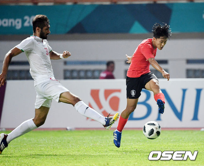 김학범 감독이 이끄는 2018 자카르타-팔렘방 아시안게임 남자 축구 대표팀은 23일(이하 한국시간) 밤 9시 30분 인도네시아 자와바랏주 치카랑의 위바와 묵티 스타디움서 중동 강호 이란과 16강전 후반 9분 이승우가 추가골을 더해 2-0으로 앞서가고 있다.