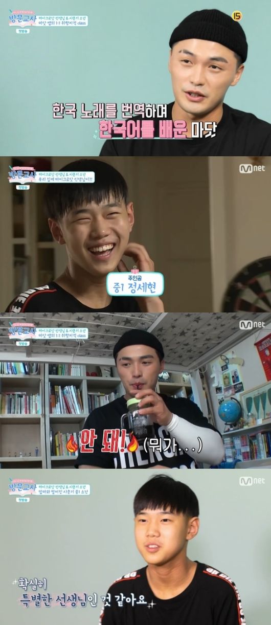 23일 방송된 Mnet '방문교사'에서는 세븐틴 버논, 래퍼 마이크로닷, 펜타곤 홍석이 방문교사가 돼 제자를 가르치는 모습이 그려졌다.