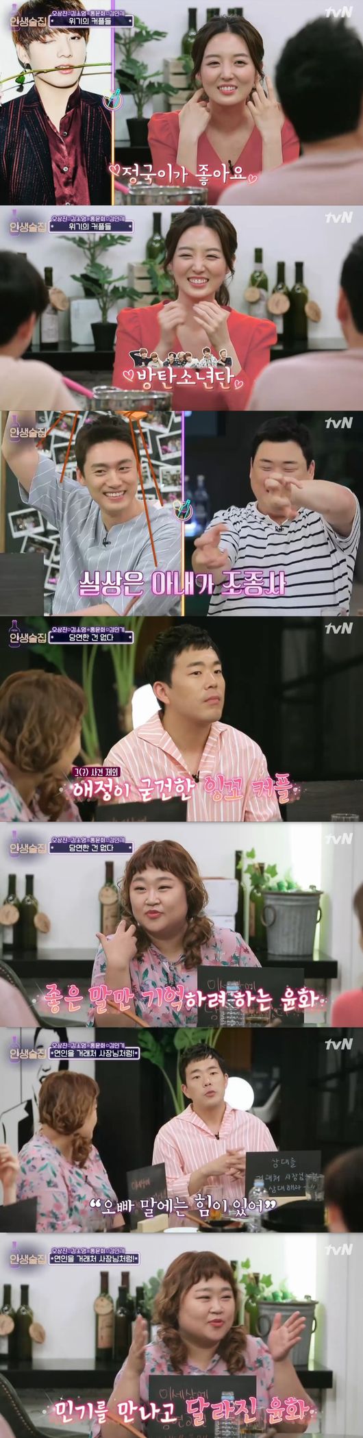 23일 방송된 tvN 예능 '인생술집'에서 연예계 대표 사랑꾼 커플로 오상진과 김소영 아나운서 부부, 김민기와 홍윤화 커플이 출연했다.