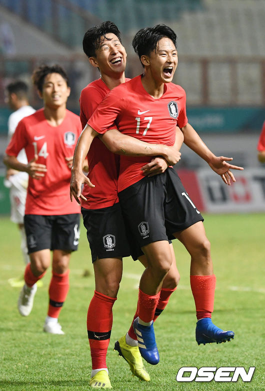 김학범 감독이 이끄는 2018 자카르타-팔렘방 아시안게임 남자 축구 대표팀은 23일(이하 한국시간) 밤 인도네시아 자와바랏주 치카랑의 위바와 묵티 스타디움서 열린 이란과 16강서 전반 40분 황의조의 선제 결승골과 후반 10분 이승우의 쐐기골에 힘입어 2-0으로 승리했다.