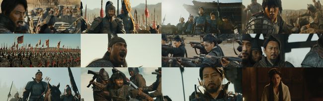 전쟁의 신 당 태종 이세민(박성웅)은 20만 대군을 손가락 하나로 진두지휘하며 압도적인 카리스마를 뽐낸다. 스틸에 담긴 20만 대군의 규모는 한국 영화에서 보기 드물었던 장면이다. 여기에 고구려 전사들인 태학도 수장 사물(남주혁), 기마부대 대장 파소(엄태구), 백하부대 리더 백하(설현). 그리고 기수와 말 모두 찰갑으로 무장한 최강 개마무사의 위용까지 한 번에 느낄 수 있다.