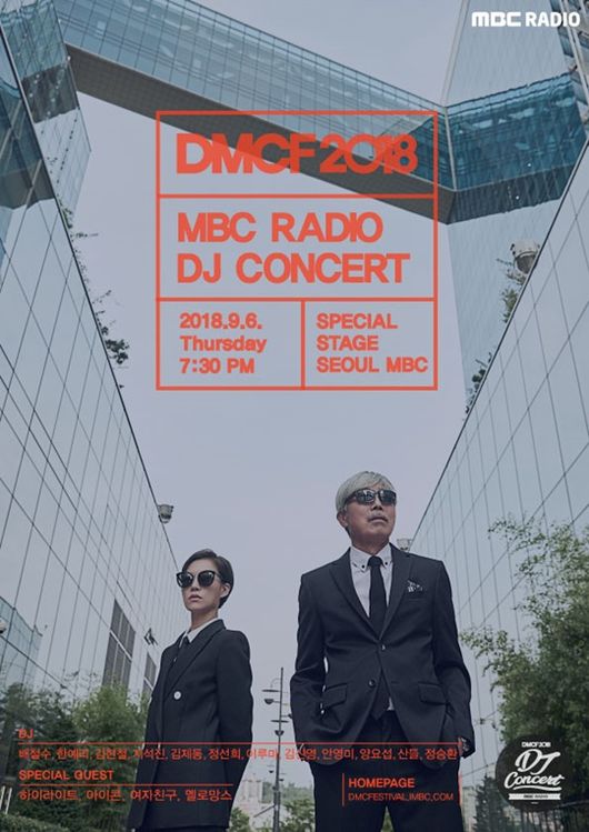 MBC ‘DMCF 2018’측은 “그간 MBC 라디오를 사랑해주신 청취자께 감사의 인사를 직접 전하고 청취자와 함께 특별한 추억을 만들기 위해 ‘라디오 DJ 콘서트’를 준비했다”며 “올해 3번째로 진행되는 DMC 페스티벌에는 ‘라디오 DJ콘서트’를 비롯해 어디서도 볼 수 없는 수준 높은 공연들이 펼쳐질 예정이니 많은 성원 부탁한다”라고 했다.