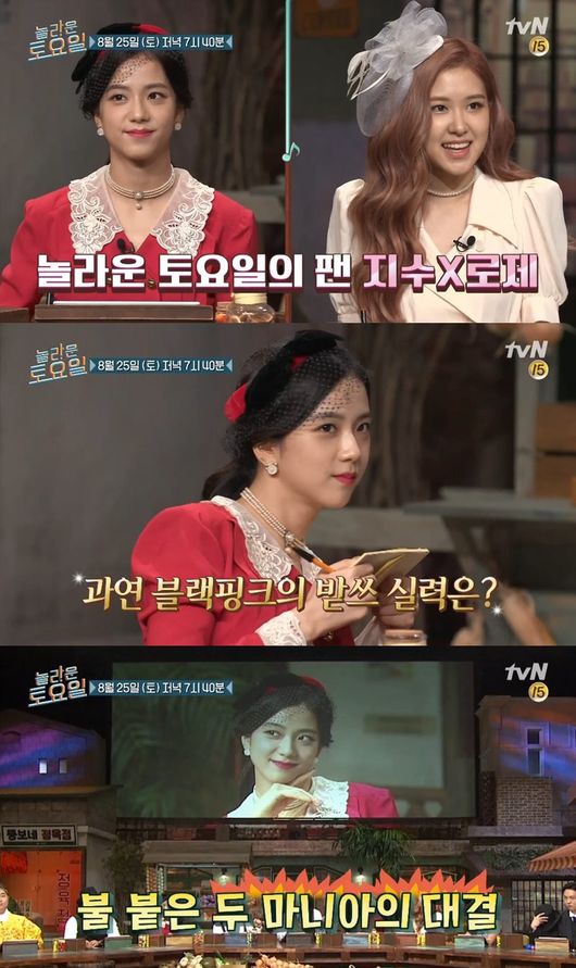 오는 25일 저녁 7시40분 방송되는 tvN 예능 '놀라운 토요일'에서는 블랙핑크 지수와 로제가 게스트로 참여한 모습이 전파를 탄다.