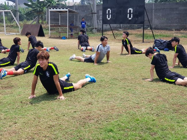 대표팀은 24일 오전 인도네시아 버카시의 브라질리언 사커 스쿨서 회복훈련을 진행했다. 어려움도 있었다. 이날 오전까지 훈련장 배정을 기다렸지만 대회 조직위는 끝내 배정해주지 않았다. 코칭스태프는 이날 아침 부랴부랴 지난 실사 때 확인했던 근처 훈련장의 상태를 파악한 뒤 훈련을 결정했다. 8강에 오른 다른 팀의 사정도 마찬가지였다.