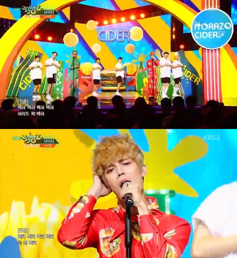 이에 앞서 진행된 인터뷰에서 조빈은 "신곡 제목은 '사이다'다. 여러분의 막힌 속을 뻥 뚫어드릴 예정이다"고 말했고, 이어 독특한 콘셉트로 화제가 된 앨범 포토카드에 대해 조빈은 "두 남자가 바다에 가서 할 수 있는 행동은 다 했다. 청순, 섹시, 엽기 모든 것이 다 담겨있다"라고 설명해 웃음을 자아냈다.