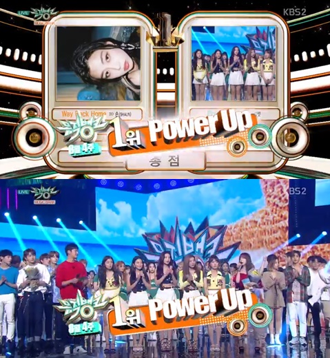 24일 방송된 KBS 2TV '뮤직뱅크'에서는 레드벨벳이 신곡 '파워 업'으로 음원차트 1위에 오르며 2주 연속 1위의 자리를 이어갔다.