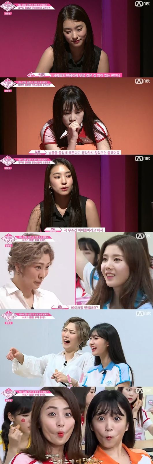 뷰티크리에이터 씬님도 연습생들을 찾았다. 씬님은 "국민프로듀서들에게 하트를 받을 수 있는 하트메이크업을 알려드리겠다"고 밝혔다. 씬님은 위에화 김시현에게 다크서클, 잡티를 커버하는 메이크업을 시도했다. 연습생들은 메이크업을 엉뚱하게 따라해 웃음을 자아냈다.