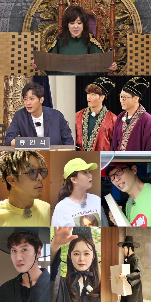 망자 ‘유재석, 하하, 송지효’의 무죄를 입증해 환생을 도울 차사로는 ‘이광수, 전소민, 양세찬’이 나섰으며 죄를 입증하는 판관으로는 ‘지석진, 김종국’이 맡아 엄청난 폭로담과 함께 치열한 진실 공방전을 예고했다. 제작진은 “‘유재석 몰이’에 유독 자신감을 보인 김종국의 심문은 경악 그 자체였다”고 전해 기대를 모은다.