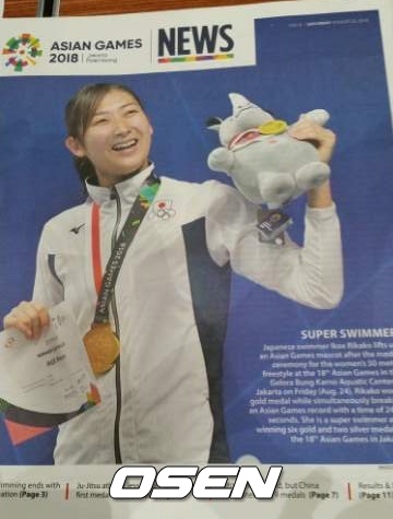 아시안게임 조직위원회 신문이 '6관왕'의 위업을 달성한 일본의 여자 수영천재 이케에 리카코(18)를 조명했다.