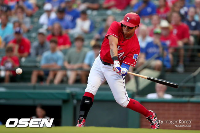 추신수는 1회 2루수 땅볼, 3회 삼진으로 물러났다. 텍사스는 1회말 먼저 4점을 내주며 몰렸다. 5회 2사 만루에서 추신수는 기회를 놓치지 않았다. 그는 로드리게스의 93.6마일 직구가 가운데 몰리자 여지없이 받아쳐 안타를 생산했다. / jasonseo34@osen.co.kr