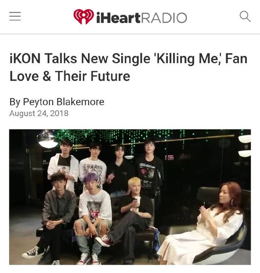 그룹 아이콘이 미국 빌보드에 이어 유명 라디오 방송국 ‘아이하트라디오(iHeartRadio)’에서도 인터뷰가 공개되며 미국 주요 매체에서 연일 집중 조명을 받고 있다.