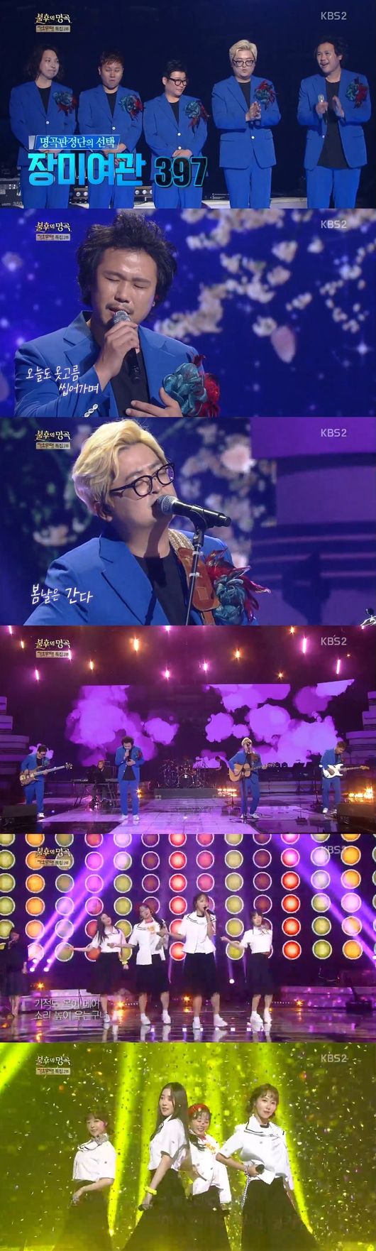 첫 번째 무대는 장미여관이 포문을 열었다. 백설희의 ‘봄날은 간다’를 선곡한 장미여관은 “이번에는 진지하게 준비했다. 가사에 집중해서 들어주셨으면 한다”며 “쉽게만 부를 수 없겠구나 싶었다. 옛 어르신들의 아픔을 간직한 노래더라. 노래를 부르면 그 시대, 그 사람들의 모습이 상상이 간다. 장미여관의 진솔한 모습을 볼 수 있는 무대가 되지 않을까 싶다”고 밝혔다. 그 각오처럼 장미여관은 그간의 유쾌한 모습은 접어두고 진솔하고 애절한 무대로 깊은 여운을 남겼다.