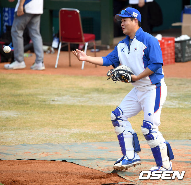 양의지는 지난 2015년 프리미어12, 20107년 월드베이스볼클래식(WBC)에서 태극마크를 달고 안방마님으로 활약했다. 국제대회 통산 10경기에서 22타수 5안타 타율 2할2푼7리 1홈런 3타점을 기록했다. 아시안게임 참가는 처음이다. /waw@osen.co.kr