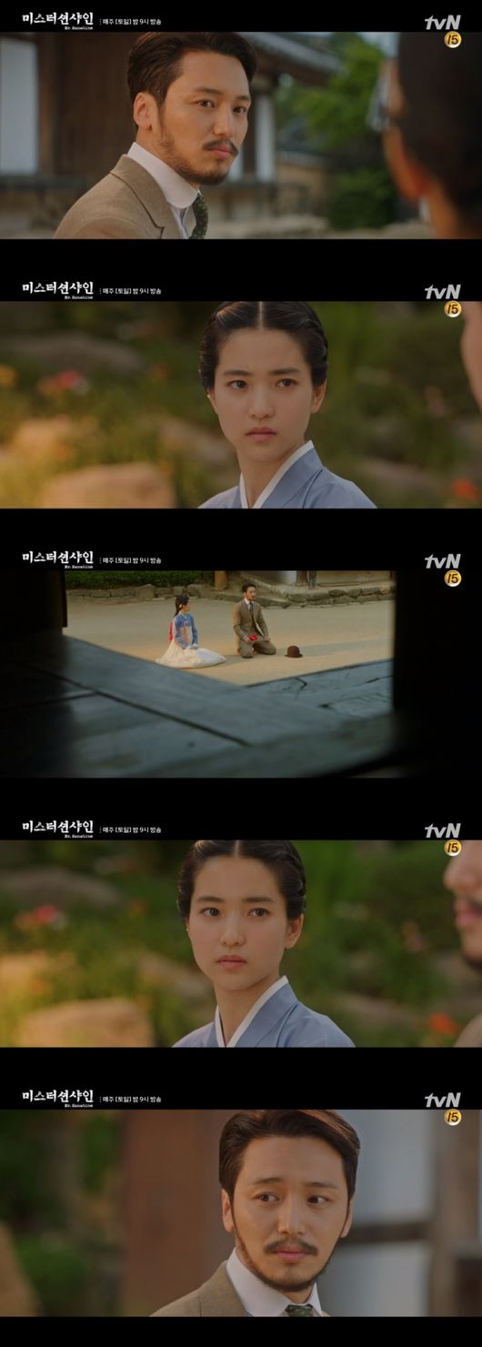 지난 25일 방송된 tvN 토일드라마 ‘미스터 션샤인’(극본 김은숙, 연출 이응복)에서는 애신(김태리 분)이 할아버지 고사홍(이호재 분)에게 혼인을 하지 않겠다며 결국 마음에 품은 사람이 있다고 고백, 희성(변요한 분)이 납채서를 들고 애신의 집을 찾아가는 내용이 그려졌다.